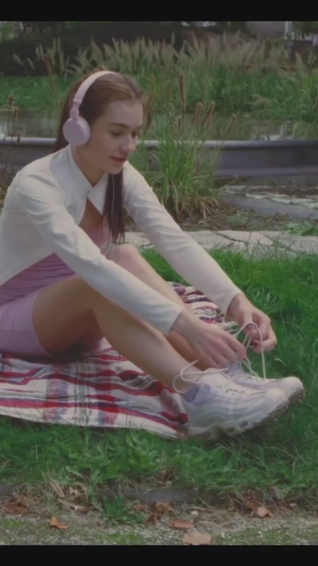 A girl takes off her socks in the fresh air in the park - FULL MOVIE